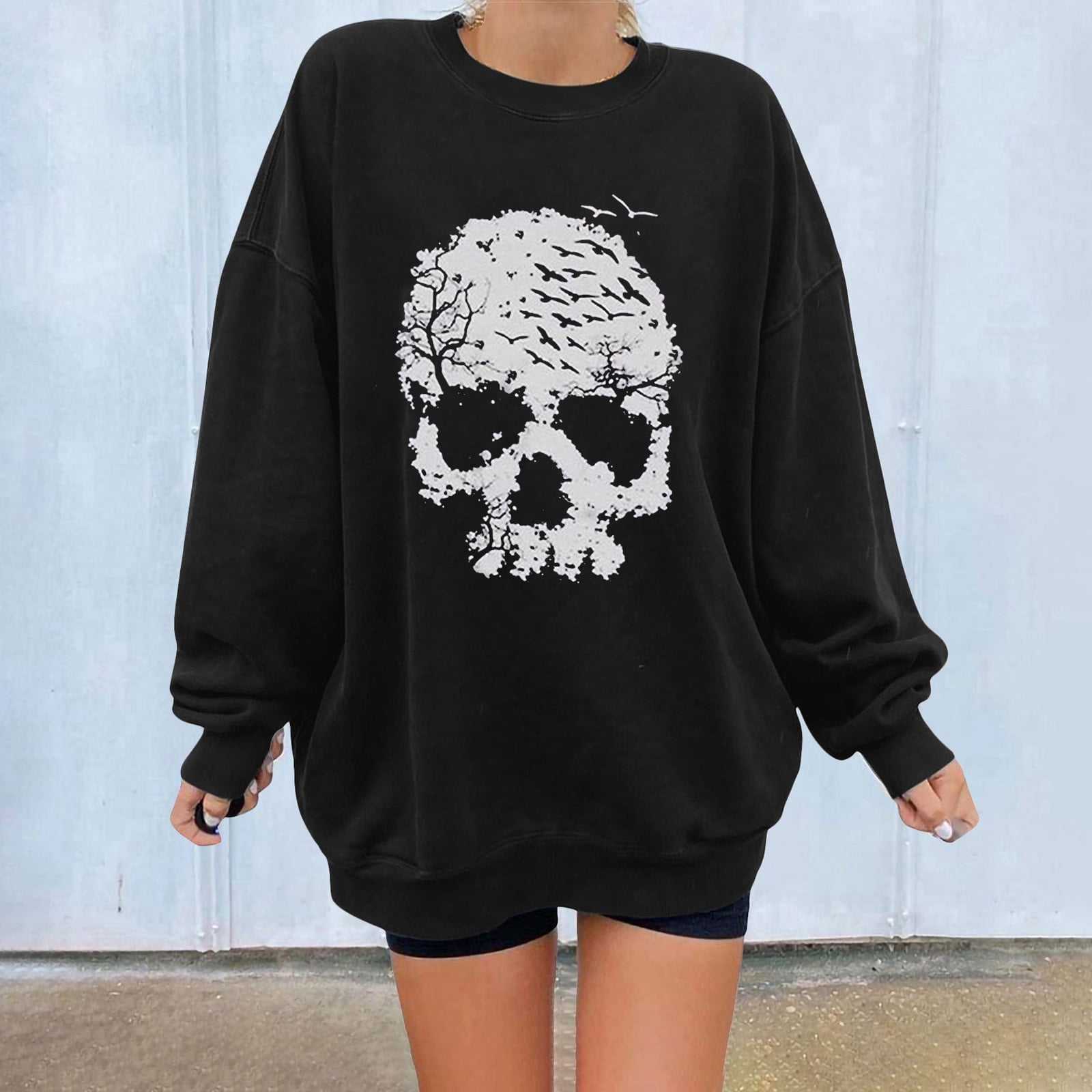 Western Tops For Ladies Plus Size Tops Trendy Loose Tunic Round Neck Pullover Long Sleeve T Shirts Womens Fall Fashion Skull Print Y2k Sweatshirts Gray M Walmart Com
